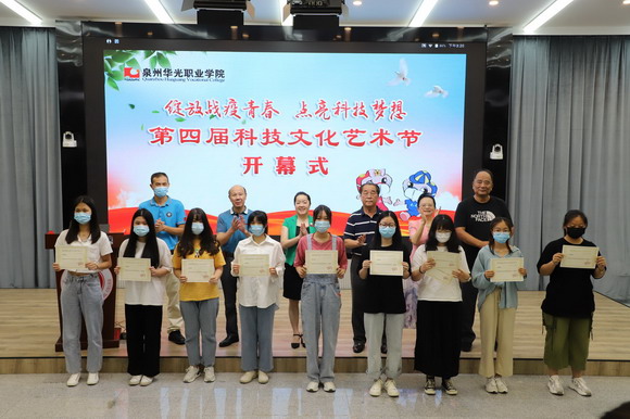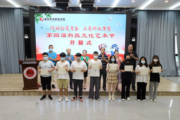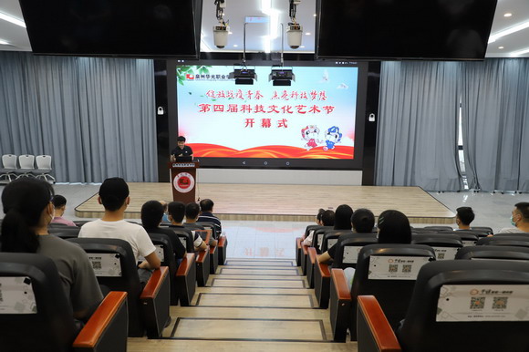 之后,吴其萃董事长郑重宣布“第四届科技文化艺术节开幕式”开幕,全体人员观看由二级学院校友及在校生代表发来的科技文化艺术节开幕式“云祝福”视频。