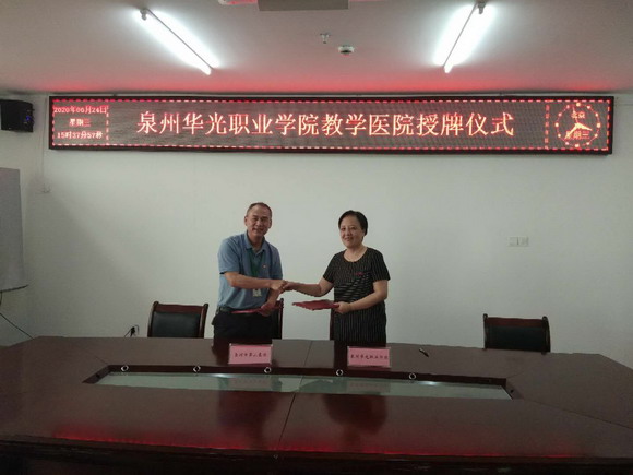 6月24日下午,我校与泉州市第三医院签订教学医院协议。泉州第三医院林泽涯书记、王进义副院长、相关科室负责人,我校崔荫副校长、健康管理学院刘小玲常务副院长、黄冬梅党支部书记、李明洋护理教研室主任参加签约授牌仪式。仪式由泉州第三医院王进义副院长主持。