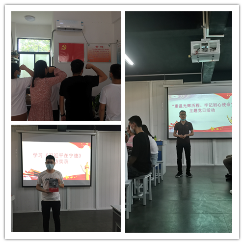 活动在全体师生党员面向党旗重温入党誓词后拉开了序幕。接着,党支部副书记谢炎就“建党节”的由来以及中国共产党发展史给全体师生党员上了一堂生动的党课。悠悠岁月铭记着中国共产党的奋斗足迹,光辉历史镌刻着党员同志的不朽功绩。