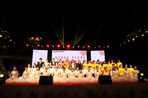 最后,全体校领导、老师和演员上台合影留念,并祝愿所有华光学子学有所成,成就梦想。