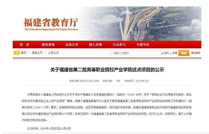 关于福建省第二批高等职业院校产业学院试点项目的公示