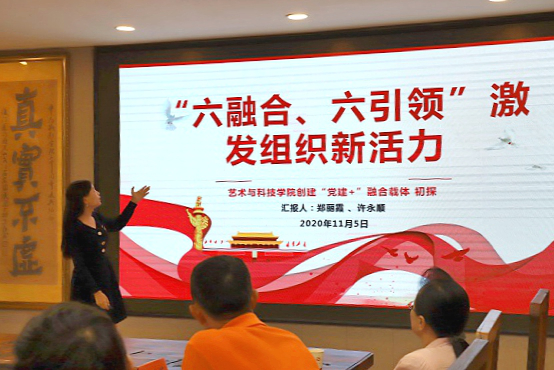艺术与科技学院党支部以“六融合、六引领”激发组织新活力为主题,阐述党建如何与精神文化融合、与制度文化融合、与艺术文化融合、与行为文化融合、与环境文化融合、与职场文化融合,由此形成了党建工作与教育教学工作相互促进的新局面。