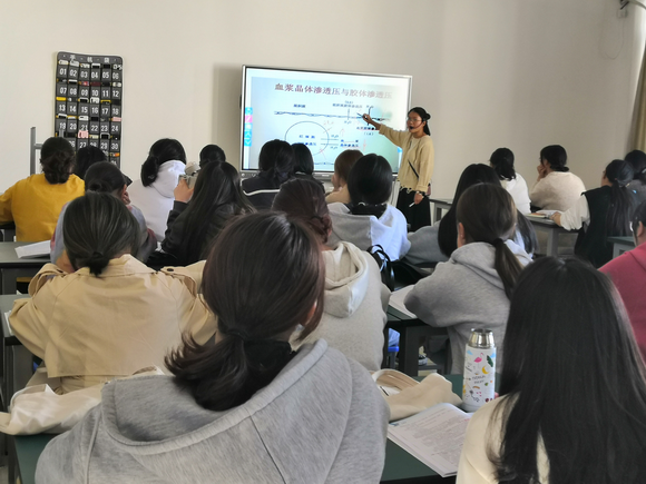 2020年11月12日上午10点10分在B608章桂梅老师为2020级助产1班学生讲授正常人体功能课程,课程的主题为血液。院长助理王彩云、护理教师吴雅华、护理教师刘先琼参加此次观摩课。