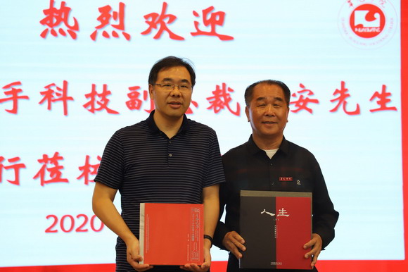 之后,我校在行政楼一楼会议室举行交流座谈会,会议由邱副董主持,吴董事长介绍我校办学概况。龙安先生说明此行的目的,具体项目负责人介绍校企合作的方案,提出可以通过制定网络运营的人才培养方案、面向社会和职业院校编制教材、通过选修课进行电商直播实训、通过赛事考核发放1+X证书、成立校园团队、校园大使等方面进行合作,共同打造直播、短视频制作等人才,凸显职业教育,满足市场需求,同时打造快看华光、快手课堂、快手实践基地、非遗进校园等向社会发出华光之声,做出职业教育的应有贡献。