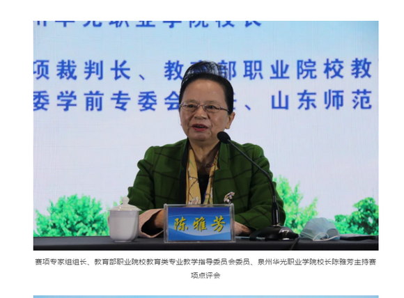 本次大赛共有来自全国各省市自治区和新疆建设兵团的32支参赛代表队96名选手同台切磋技艺,共展职教风采。赛项主题:德能兼修,人人出彩。在开幕式上,陈雅芳校长就赛程、技术支持进行答疑;赛后负责赛项点评会和赛项总结,进一步提升赛事质量和学前教育专业建设水平,同时也扩大了泉州华光职业学院在全国高职高专院校的影响力。