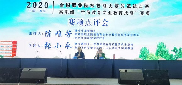 11月26日—29日,2020年全国职业院校技能大赛改革试点赛高职组“学前教育专业教育技能”赛项赛事在青岛职业技术学院圆满举行,我校校长陈雅芳担任本次大赛执委会委员、专家组组长。