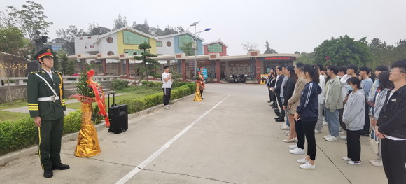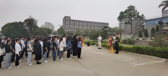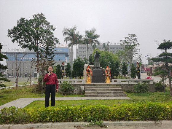 国旗护卫队向先贤敬献花篮。吴其萃董事长带领师生向先贤鞠躬,并在讲话中提到孙中山铜像是2016年11月孙中山先生的孙女孙穗芳女士赠送给华光学院的,愿华光学子能秉承孙中山先生追求真理、天下为公的优良传统;继承吴文季先生“一生坎坷,却始终歌唱光明的”的崇高精神,爱国爱校。