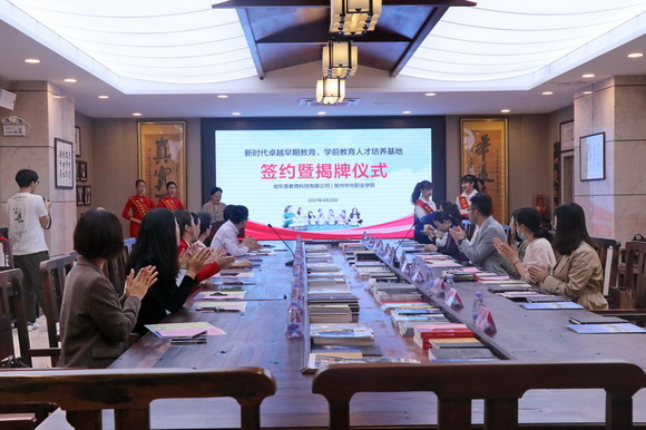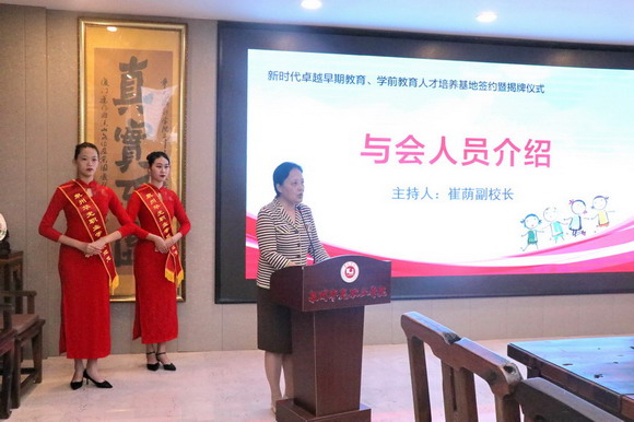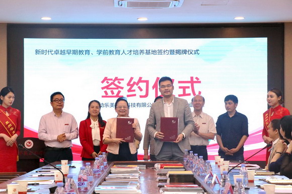 为促进产教融合,深化校企协同育人机制,4月28日下午,我校在行政楼一楼会议室与幼乐美(北京)教育科技公司(以下简称幼乐美公司)举行合作签约和基地揭牌仪式,幼乐美公司董事长陈洪秋、区域培训主任赵硕、华东大区总经理陈宏宇一行,幼儿园、亲子园园长,我校校长陈雅芳、党委书记吴颖芳、副校长崔荫、总会计师黄金华、教务处、实训室及教育学院师生出席签约仪式。