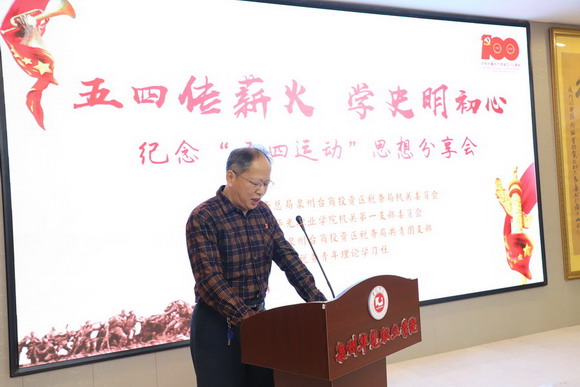 税务局蔡斌伟副局长为活动致辞,他说,青年就要坚定信念,焕发蓬勃朝气;青年就要脚踏实地,卯足实干劲头;青年就要敢想敢为,勇于担当责任。希望广大青年干部要以此次活动为契机,重温辉煌五四青年运动历史,感受杰出的共产主义运动青年领袖心怀社稷、志存高远、不怕牺牲、忘我奔走的强大精神力量,激发崇法守纪、爱岗敬业的担当精神和天下为公的家国情怀。