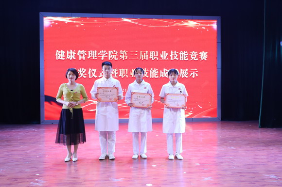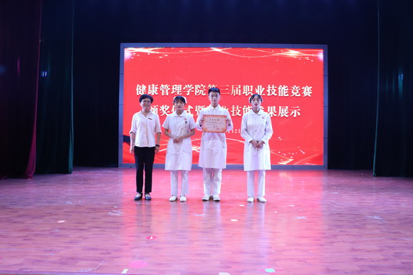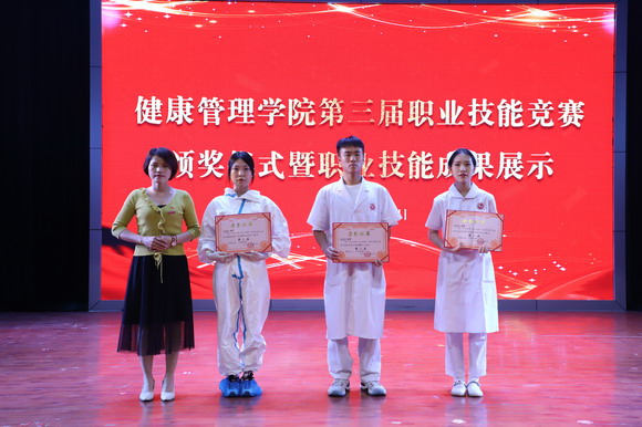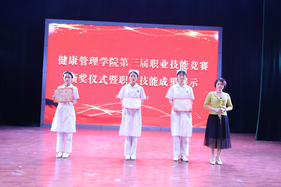 成立大会结束后,第三届职业技能竞赛颁奖暨技能展示紧随其后。健康管理学院师生弘扬了南丁格尔救死扶伤、甘于奉献、大爱无疆的精神,开展技能竞赛以赛促学,以赛促练,以赛促教,推动学生不断提高护理技能。