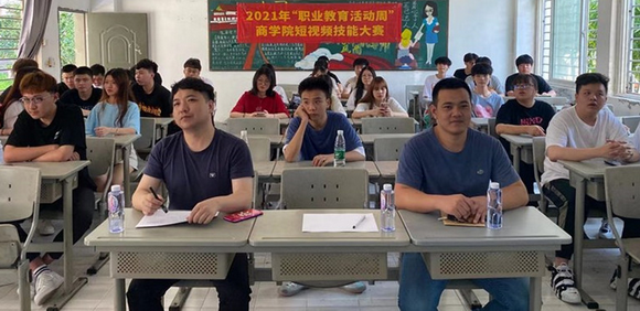 (三)5月12日下午,商学院在南区教学楼B108教室举行短视频技能大赛决赛,短视频大赛分为三个拍摄类型:电商类、商家类和学院介绍类。共有19级和20级市场营销专业、工商管理专业60余名学生报名参加,经过激烈角逐、层层筛选,最终有27个作品进入了网络投票和现场展示环节。