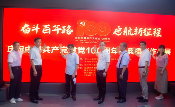 为深入学习贯彻习近平总书记在党史学习教育动员大会上的重要讲话精神,进一步推动党史学习教育深入开展,喜迎中国共产党建党100周年,5月26日上午,由泉州台商投资区党工委党史学习教育领导小组办公室指导、泉州华光职业学院主办的“奋斗百年路 启航新征程”摄影作品展揭幕仪式在我校校史馆隆重举行。