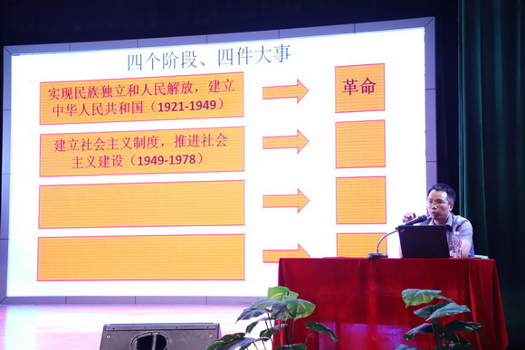 魏少辉副教授以时间为轴线,从革命、建设、改革、复兴四个阶段,党的浴血奋战与民族独立、人民解放的实现;党的艰辛探索与社会主义建设的曲折前进;党的新抉择与中国特色社会主义的开创、发展;党的新征程与中国特色社会主义进入新时代;中国共产党百年奋斗历程的基本经验五个方面详细阐述了中国共产党的百年光辉发展历程。