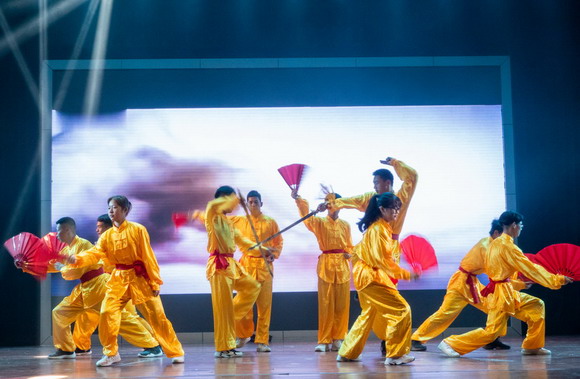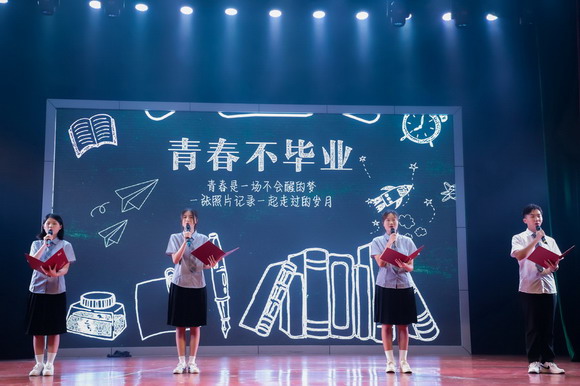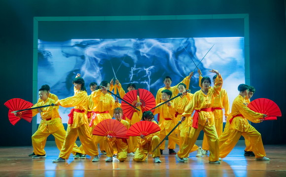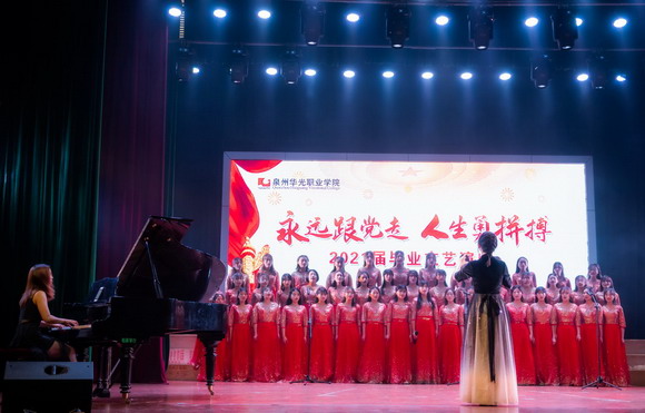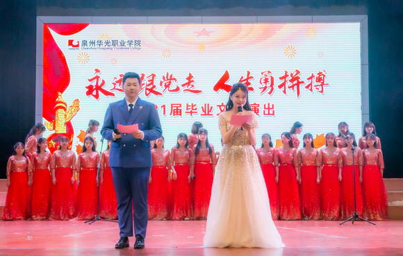 毕业典礼后,学校举行“永远跟党走,人生勇拼搏”毕业文艺演出,各二级学院的毕业生和在校生代表们同台演绎,以大合唱、朗诵、歌曲、舞蹈、武术等形式礼赞中国共产党百年华诞,也祝福毕业生们前程锦绣。