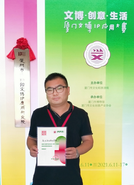 6月11日,我校方肃副校长带师生团队参加厦门市文化和旅游局主办,厦门市博物馆和厦门市文化创意产业协会承办厦门文博IP应用大赛(2021)评选活动,通过4月和5月学校教务处及二级学院积极组织师生投稿。最终,企业导师李海聪老师作品《国之粹》获入围奖,张淑朋老师获贡献奖,泉州华光职业学院获优秀组织奖。