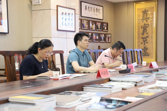 会后,检查组一行在吴颖芳书记的陪同下实地考察了摄影实训大楼,参观了“奋斗百年路,启航新征程”摄影作品展。