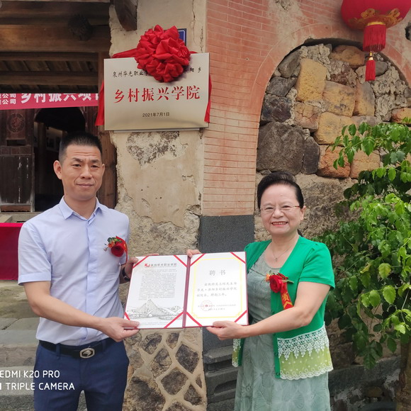 为深入学习、贯彻党的十九届五中全会把全面实施乡村振兴战略提到更加重要的位置精神,同时献礼中国共产党百年华诞,由我校与济阳乡人民政府共建的“华光·济阳乡村振兴学院”于6月29日上午在大田县济阳乡正式挂牌成立,我校顾问贾益民教授及夫人赵兰英女士,董事长吴其萃、校长陈雅芳、副董事长邱少煌、顾问庄培章及相关部门负责人前往济阳乡同济阳乡人民政府领导共同为“乡村振兴学院”揭牌,我校国际教育学院院长庄培章教授兼任乡村振兴学院院长,福建致诚投资有限公司总裁吴志绶先生任副院长。