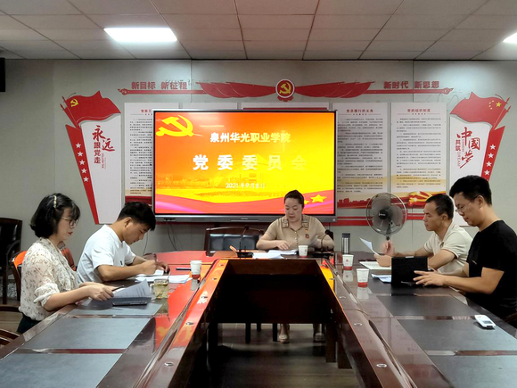 9月8日上午,我校党委书记吴颖芳在行政楼三楼会议室主持召开党委会,深入学习习近平总书记在西藏、河北考察时的重要讲话精神,学习习近平总书记给廖俊波同志母亲季平英同志的回信,学习“时代楷模”孙丽美同志先进事迹,学习泉州市委关于党史学习教育相关文件精神,研究部署《中共福建省委办公厅关于进一步加强全局性突发性敏感性事件信息报送工作的通知》,全体党委委员及党委宣传部负责人参加会议。