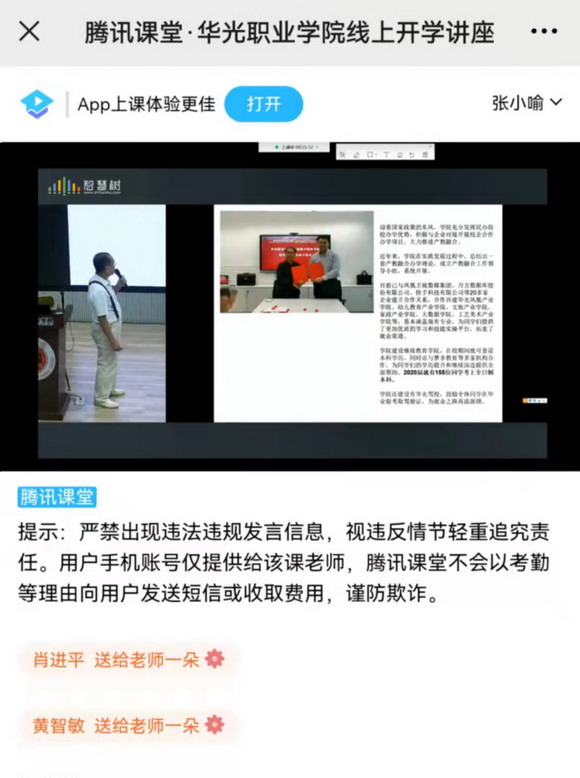 截止9月14日,我校全员核酸检测结果皆为阴性,师生健康、校园稳定。根据上级部门要求,全体学生开始由线下上课转为线上上课,师生不聚集,教务处协同实训中心迅速调试网络课程设备,共有323位老师,610个课堂转为线上直播教学,全体教师立刻切换教学方法,线上点名、开弹幕、晒笔记……老师们熟练且从容。9月15日上午,吴其萃董事长也在摄影大楼智慧教室为2021级新生线上直播“华光校史”讲座。学史明理,吴其萃董事长以其波澜励志的创业史,鼓励同学们不负韶华,肆意书写青春豪情,努力追寻灿烂的梦想。