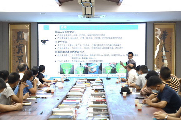 为筑牢防疫线,提升全体师生的抗疫知识,9月29日下午,我校邀请洛阳镇卫生院副院长陈建泉莅校举办疫情防控专题讲座,讲解高等学校新冠肺炎疫情防控技术方案,讲座在中区行政楼一楼会议室举行,全体校领导和中层干部参加听讲。