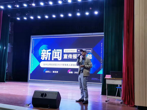 在为期两天的培训中,我校产教融合促进中心主任刘日安老师、特聘讲师庄冬江老师、市残联康复中心心理咨询师林秀兰老师、华光在线张小喻老师、市残联康复部主任傅理惠老师分别讲授了《新闻宣传报道基础》、《微信公众号操作基础》、《生活与工作协调管理》、《摄影摄像基础》、《残疾人精准康复服务》等课程,学员们通过学习提升了业务能力和服务水平。