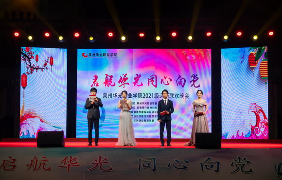 11月3日晚,华光田径场灯光璀璨,熠熠生辉,由我校团委主办、招商银行洛江支行赞助的“启航华光,同心向党”2021级迎新联欢晚会在此隆重举行,我校董事长吴其萃,学校全体党政领导,泉州台商投资区、洛阳镇、西塘村、招商银行泉州分行、中国联通台商投资区分公司、梦飞教育、华光继教院等有关领导以及我校各二级学院、部门领导,出席晚会,在中国共产党成立100周年之际,政校行企领导与全体同学共联欢,庆贺祖国繁荣昌盛,喜迎2021级新生的到来。