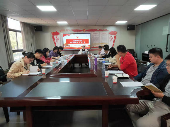 11月9日上午,我校在行政楼三楼会议室召开党委理论学习中心组学习(扩大)会。会议由党委书记吴颖芳主持,党委委员、党支部书记及党委办公室、党委宣传部、团委会、学生处、保卫处等部门负责人参加会议。