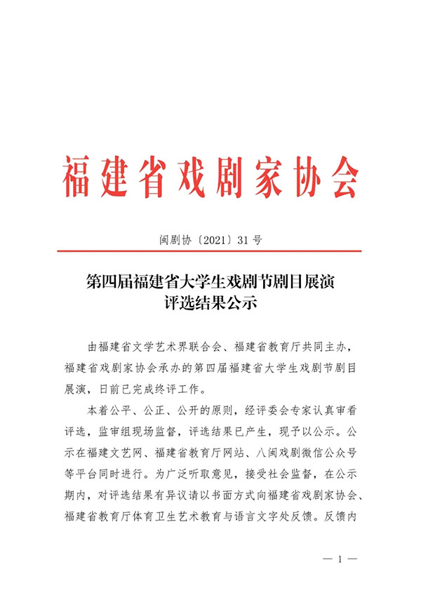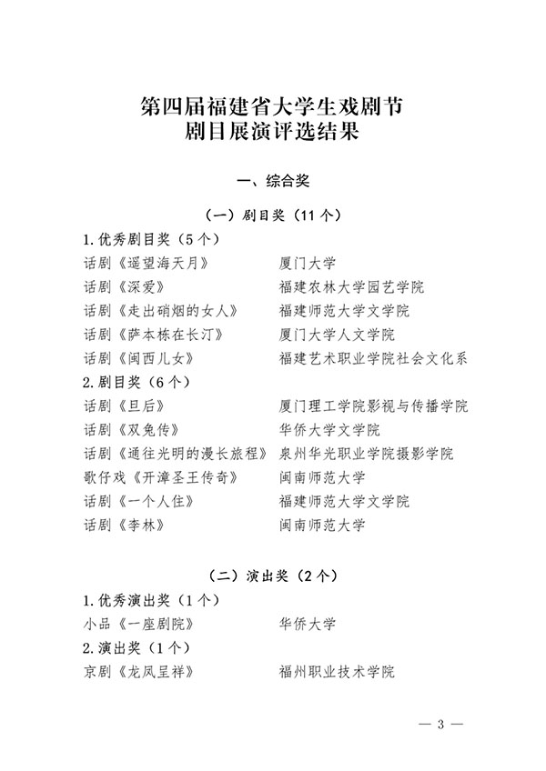 附件:第四届福建省大学生戏剧节剧目展演评选结果公示