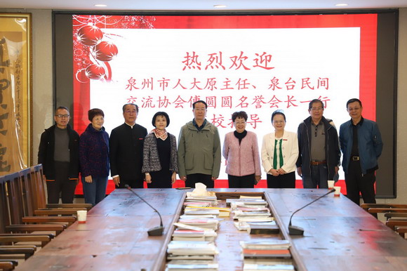 12月2日上午,泉州市人大原主任、泉台民间交流协会名誉会长傅圆圆,泉州市人大原副主任陈家富,泉州市台港澳办四级调研员林荣清一行在区党工委委员、党群工作部部长吴艺晖的陪同下,莅临我校参观访问,我校董事长吴其萃、校长陈雅芳在行政楼一楼会议室向傅圆圆会长一行介绍我校的办学概况以及和台湾的深远渊源,并带领来宾参观我校摄影实训大楼、融媒体中心等实训基地,受到傅圆圆会长一行的高度肯定。