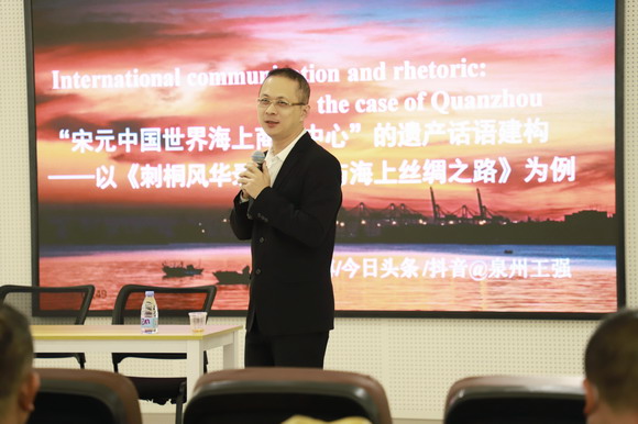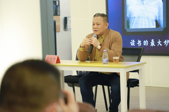 揭牌仪式后,“与书为友,照亮人生”名师讲堂开讲,福建师范大学校友、复旦大学文学博士后庄伟杰,澳门城市大学博士、黎明大学副教授王强分别做了《读书的最大妙处》《从泉州开始讲述中国故事》专题分享。
