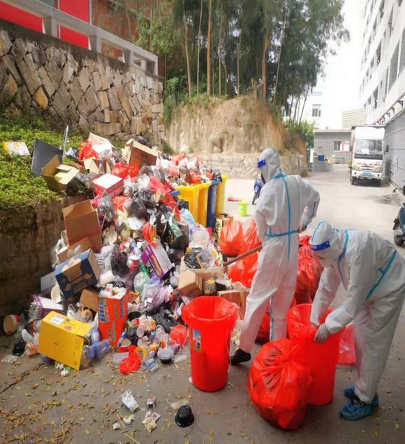 学校3月16日实施封闭式管理以来,后勤处因人手不足,清洁工、消杀工在校外居住无法入校,故学校组织一批有担当、有责任的垃圾、消杀志愿服务队,经校医刘医生培训消杀技能,每天上、下午根据学校实际情况安排工作,志愿者消杀打包垃圾并统一集中堆放在南北区两个堆放点后,再装车运送到镇垃圾中转站,所有垃圾装运的员工严格按照要求佩戴防护工作服,做好自我防护,每天仅用两个小时把垃圾清运完毕。志愿者们成为环境安全卫士,为守护校园的整洁和卫生安全奉献力量。
