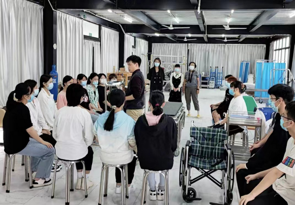 (5月12日下午,康养学院举办陈海生老师移动照护实操观摩课。)
