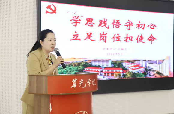 校长陈雅芳发表了热情洋溢的致辞。她指出,党的建设和思想政治工作是一项系统性工程,全校上下要有“大党建”、“大思政”的工作理念,推动全员参与、全方位参与、协同参与。为切实提高学校党建和思政工作水平,陈雅芳校长向与会老师们提出三点希望:一是贯彻新发展理念,努力开创工作新局面;二是坚持深化改革,落实落细落地“三全育人”;三是聚焦大局大势,精准服务学校高质量发展。
