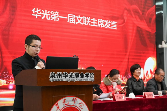 泉州华光职业学院文联在全体人员热烈的掌声中正式成立。同时也标志着泉州华光职业学院文艺工作开始迈向新的起点,华光文联将为推动学校的新一轮发展汇聚文艺能量,为学校发展建设注入新活力,为繁荣泉州市文艺事业添砖加瓦。