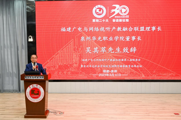 福建广电与网络视听产教融合联盟理事长、泉州华光职业学院董事长吴其萃先生致辞。