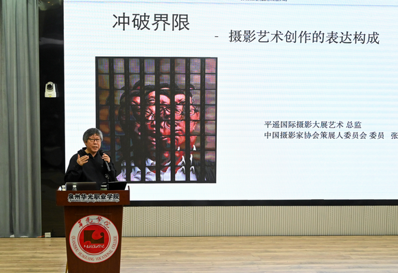 3月11日上午,中国摄影家协会策展委员、平遥国际摄影大展艺术总监张国田在泉州华光职业学院摄影大楼智慧教室举办《突破界限——摄影艺术创作的语音与表达》主题讲座,参加福建华光摄影艺术馆开馆暨第二届泉州(华光)影像双年展开幕式的部分嘉宾、我校副校长方肃、摄影与电影技术学院部分师生代表以及摄影届朋友出席听讲。