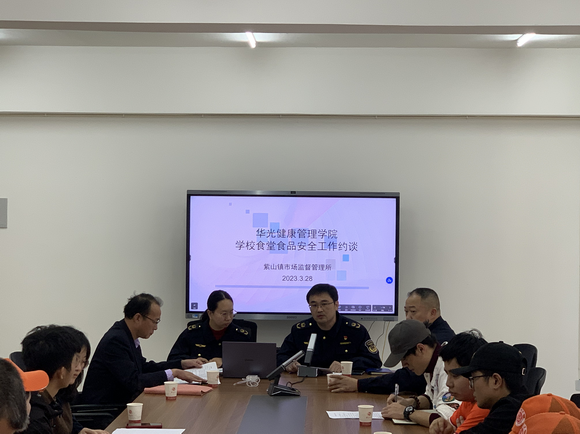 最后,后勤管理服务中心副主任、食品总监王昭钦对本次会议进行了总结。对紫山镇市场监督管理所对我校食堂运营以来的工作指导及肯定表示感谢。校园食品安全工作不容忽视,要通过多种形式进行文明用餐习惯宣传,针对监督所食品安全检查工作提出的问题,要充分重视,正视问题,不加避、不敷衍,从严查摆、有的放矢,堵塞漏洞,消除隐患,确保校园食品安全无隐患,正确认识“师生健康、校园健康”,明确校园食品安全责任。