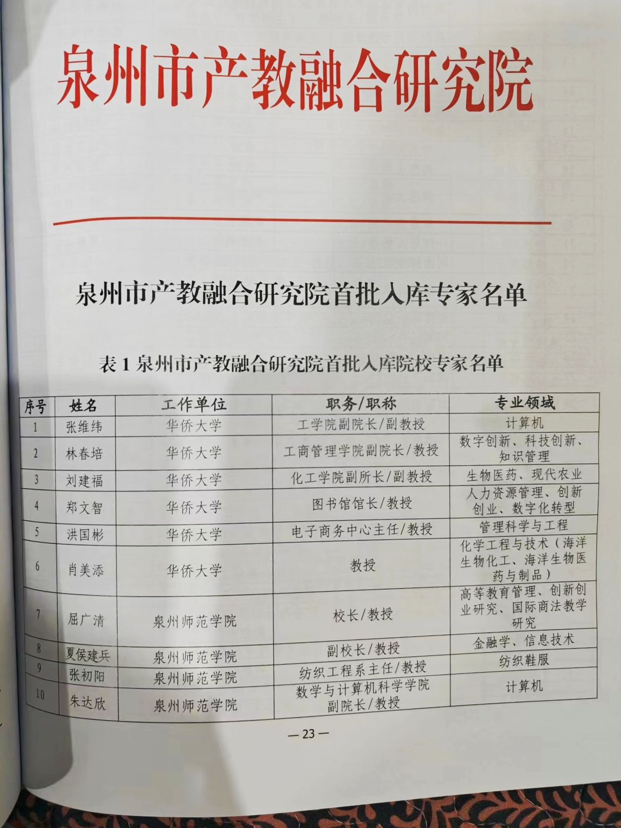 吴其萃董事长,林述琦副校长,工艺美术学院常跃中院长、张淑朋副院长成为泉州市产教融合研究院首批入库专家,刘日安主任作为现代服务业健康养老领域的唯一代表同时入选。据悉,泉州市产教融合研究院首批入库专家275名,泉州市产教融合联盟共吸纳首批会员单位120个,秘书处落户黎明职业大学。