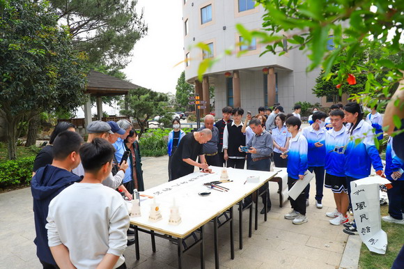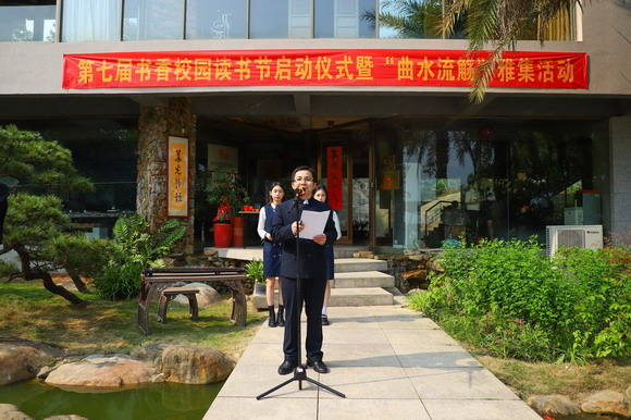 四月芳菲香满园,曲水流觞传雅韵。4月22日(农历三月三),是我国传统节日“上巳节”,4月23日,是第28个“世界读书日”,欣逢这两个特殊的日子,4月22日下午,我校图书馆和华光文联合主办的第七届书香校园读书节启动仪式暨“曲水流觞”雅集活动在华光萃美园隆重举行。福建省文化厅原副厅长、正厅级巡视员庄晏成,泉州市委原常委、宣传部部长宋长青,泉州市政协原副主席陈敬聪,以及泉州台商投资区税务局副局长陈尚仁携税务局团队参加活动,我校董事长吴其萃、校长陈雅芳、书记吕红军和副校长崔荫出席,同各界诗友嘉宾和华光师生一道吟诗作赋,挥毫泼墨。来自台湾的郑敏庆教授伉俪也参加这项中华传统雅趣活动,现场赋诗吟诵,与师生共度浪漫佳节。