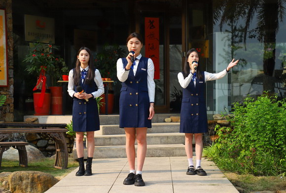 仪式上,首次播送了由我校吴其萃董事长和陈惠明老师共同创作,杨艺泉老师配乐的新歌《康定几多情》。