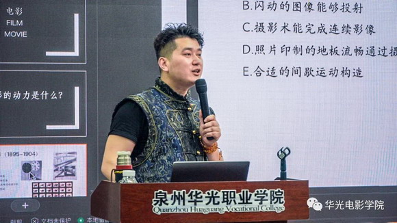 轲然导演从世界电影史讲到电影艺术,由浅入深。轲然导演讲解并演示了电影机的功能作用;给所有师生普及了电影艺术的应用前景;并通过自己的例子做出详细分析,为摄影与电影技术学院的同学们指出一条广阔的道路。