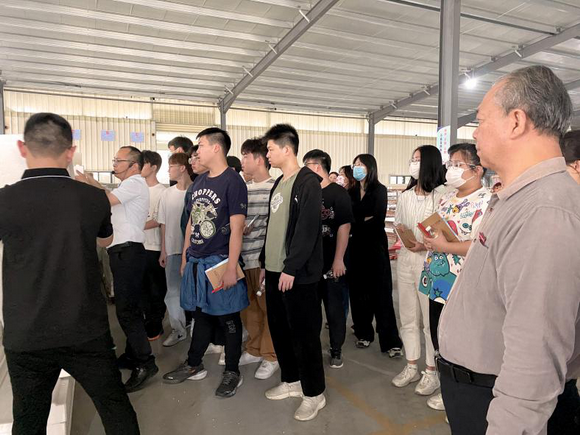 华光产教融合大蓬车参观“石漆军建筑模型”,听取企业对建筑外观设计要点的讲解。深入“石漆军建筑构件”车间,了解建筑装配构件的功能与用途。