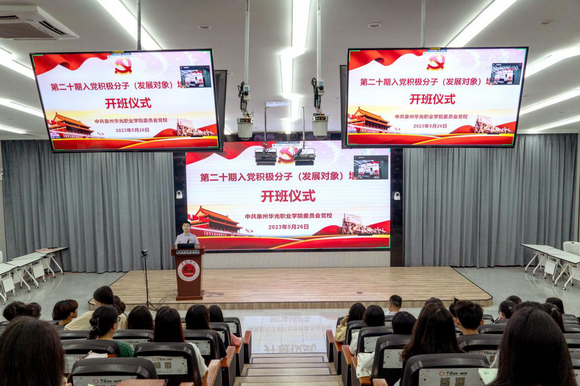 为深入学习贯彻党的二十大及二十届一中、二中全会精神,扎实开展习近平新时代中国特色社会主义思想主题教育,贯彻落实省委“深学争优、敢为争先、实干争效”行动部署,落实新时代党的建设总要求和新时代党的组织路线,做好党员发展工作,提高入党积极分子和发展对象的政治思想素质和理论水平,把好党员“入口关”。5月26日下午,泉州华光职业学院党校第二十期入党积极分子(发展对象)培训班开班仪式在摄影大楼智慧教室顺利举行。党委书记吕红军出席开班仪式并作动员讲话,各党支部书记及全体党校学员参加开班仪式。仪式由党委委员、党委办公室主任何立主持。
