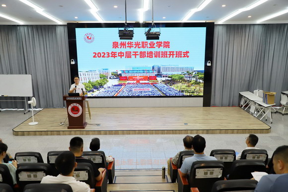 在全校师生员工持续学习宣传贯彻党的二十大精神、深入实施福建省“深学争优、敢为争先、实干争效”行动之际,为加强学校干部队伍建设,增强中层干部的思想政治觉悟和综合治理能力,2023年8月23日,我校在摄影实训大楼五楼举行2023年中层干部培训,校长陈雅芳,党委书记吕红军、副书记陈雄华,副校长林述琦、崔荫,总会计师黄金华以及全体中层干部参加培训。