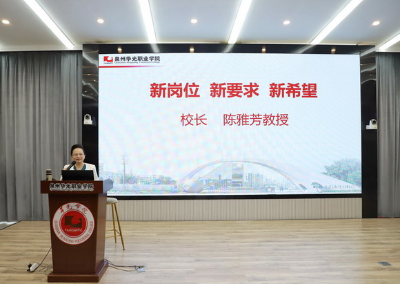 上午,陈雅芳校长为新教师讲授入职培训第一课《新岗位 新要求 新希望》,带领新教师领略泉州华光职业学院(台商校区、惠安校区)风采风貌,详细介绍学校的办学优势、师资力量与综合能力,加深新教师对学校的了解。同时为肃校风教风,陈校长从“师德关”“教学关”“双师关”“科研关”“生活关”对新教师提出岗位要求。