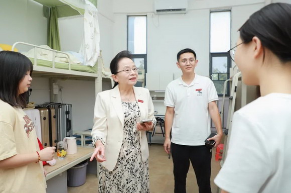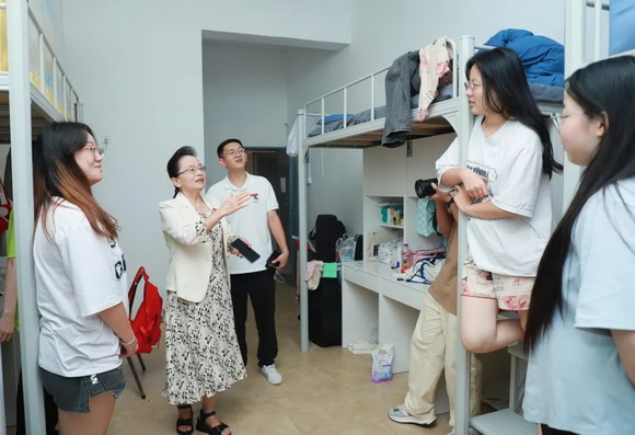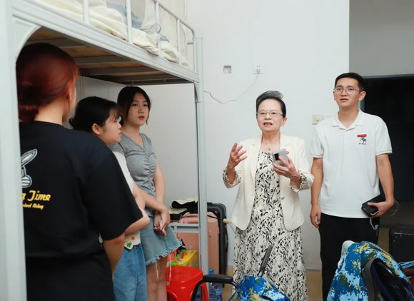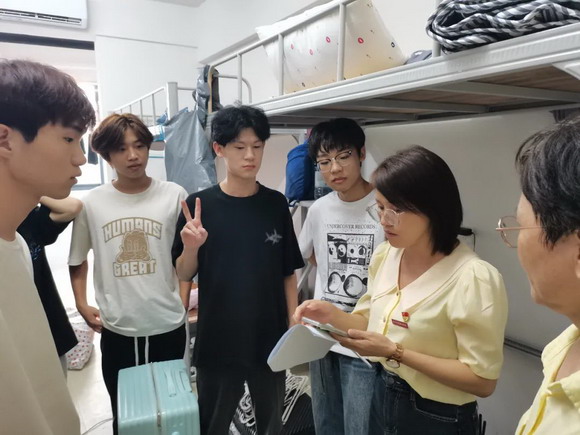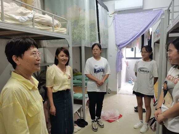同期惠安校区,健康管理学院的刘小玲院长和黄冬梅书记也深入新生宿舍,给新生送去温暖。