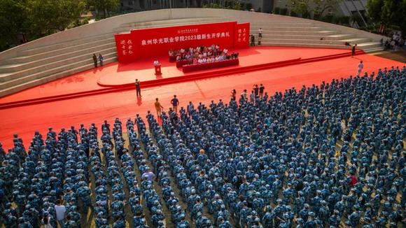 春花秋实,岁物丰成。9月18日上午,我校在台商校区和惠安校区分别举行2023级新生开学典礼暨军训动员大会,6600多名2023级华光新学子神采飞扬参加开学典礼。我校理事长吴其萃,校长陈雅芳,党委书记吕红军,副理事长吴华宇、邱少煌,副校长林述琦,副书记陈雄华,总会计师黄金华以及职能部门负责人,二级学院院长和书记等出席两校区的开学典礼。典礼由学生处处长黄强主持。