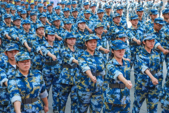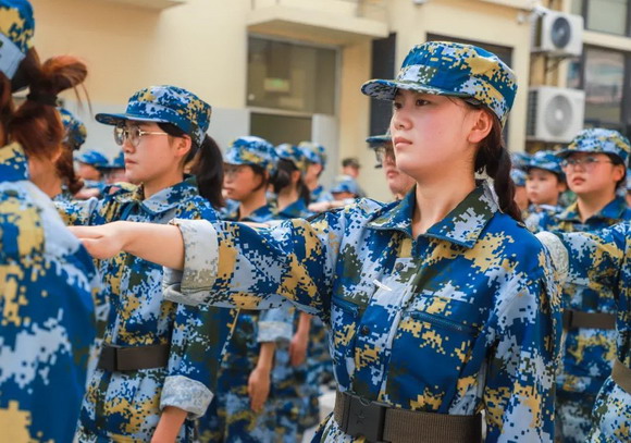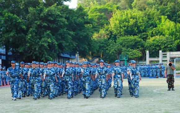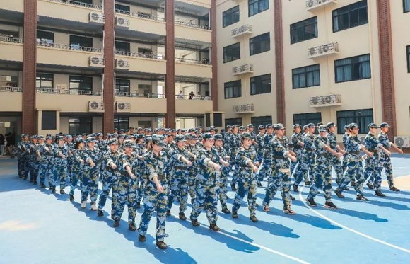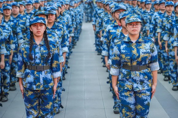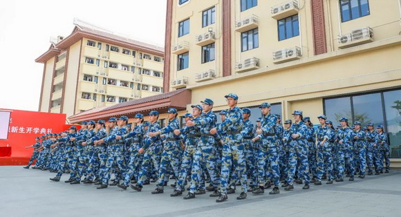 2023级的新生们,在烈日骄阳下,身着海军蓝的戎装,整齐划一的纵队,铿锵有力的步伐,是校园里最美的风景。