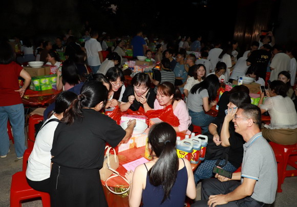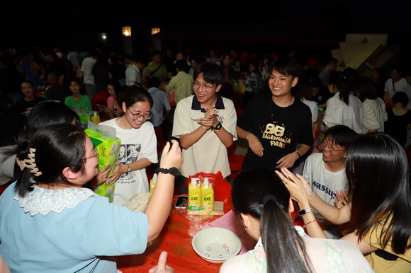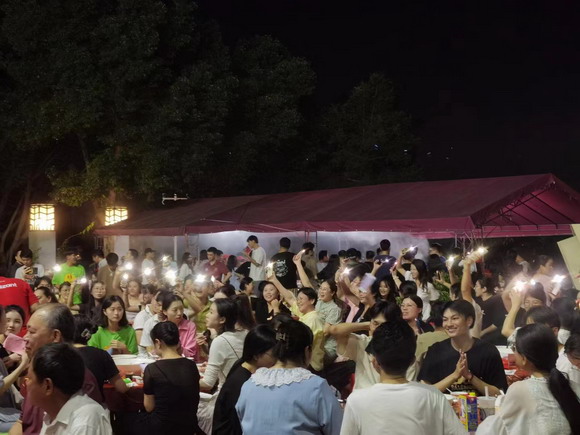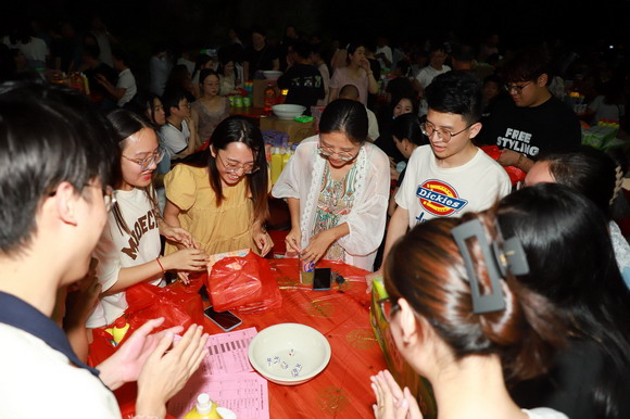 9月27日晚,明月高照,华光翠美园内灯光闪耀,清脆的骰子声此起彼伏,欢乐的笑声不绝于耳。三红、四进、对堂、状元……600名教职员工欢呼四起连连中奖,董事会成员和校领导也深入老师队伍之中共嬉戏、同欢乐。这是泉州华光职业学院2023年“迎中秋·庆国庆”双节联欢会活动的开场环节——闽南传统中秋博饼活动。
