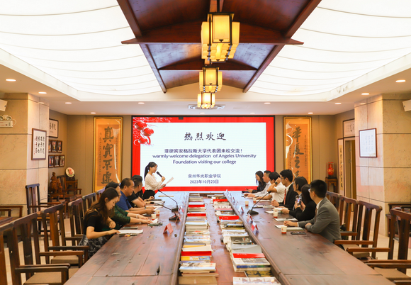 10月25日下午,菲律宾安格拉斯大学(Angeles University Foundation)副校长DR.OLGA ANGELINETTA P.TULABUT、研究生院院长 DR.ELVIRA S.BALINAS一行四人来我校洽谈交流。我校董事长吴其萃、副校长崔荫接待来访客人,对外交流合作处、教务处、招生处负责人以及国际教育学院等相关人员参加,会议由教育学院吴铁淋老师主持。